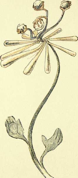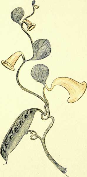 A trailer. Considered unlucky to pick them. Of all the blooming things, these are the most discouraging. From the many descriptions of this plant it seems a sort of Horse Chestnut. Its color and form are bad. Enthusiasts have been known to watch for results for years without one plant showing. Related to the Hope Plant.