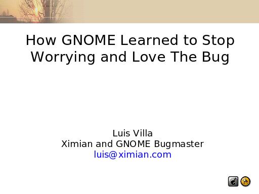 When I submitted my paper, this was the working title. I knew I was in over my head when a friend looked at the list of papers and the best he could come up with to comfort me was 'don't worry about it, Luis, I know you're not a kernel hacker, but hey... someone has a paper with a Kubrick title!' <pause> “Oh, that's you.”