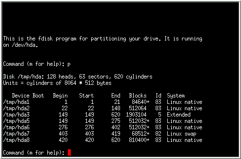 fdisk includes online help which is terse but useful. Here are a few tips: