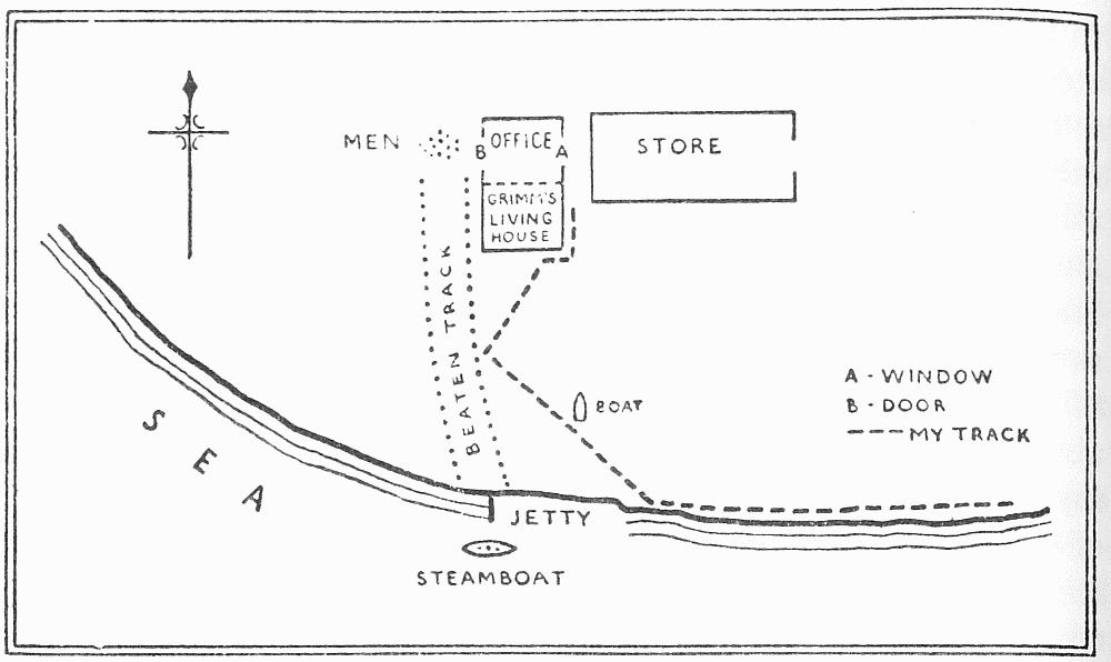 I remembered, later on, the prismatic compass, and wired to the Minories to have one sent at once, feeling rather relieved that I was not present there to be cross-examined as to size and make. The reply was, “Not stocked; try surveying-instrument maker”—a reply both puzzling and reassuring, for Davies’s request for a compass had given me more uneasiness than anything, while, to find that what he wanted turned out to be a surveying-instrument, was a no less perplexing discovery. That day I made my last précis and handed over my schedules—Procrustean beds, where unwilling facts were stretched and tortured—and said good-bye to my temporary chief, genial and lenient M——, who wished me a jolly holiday with all sincerity.