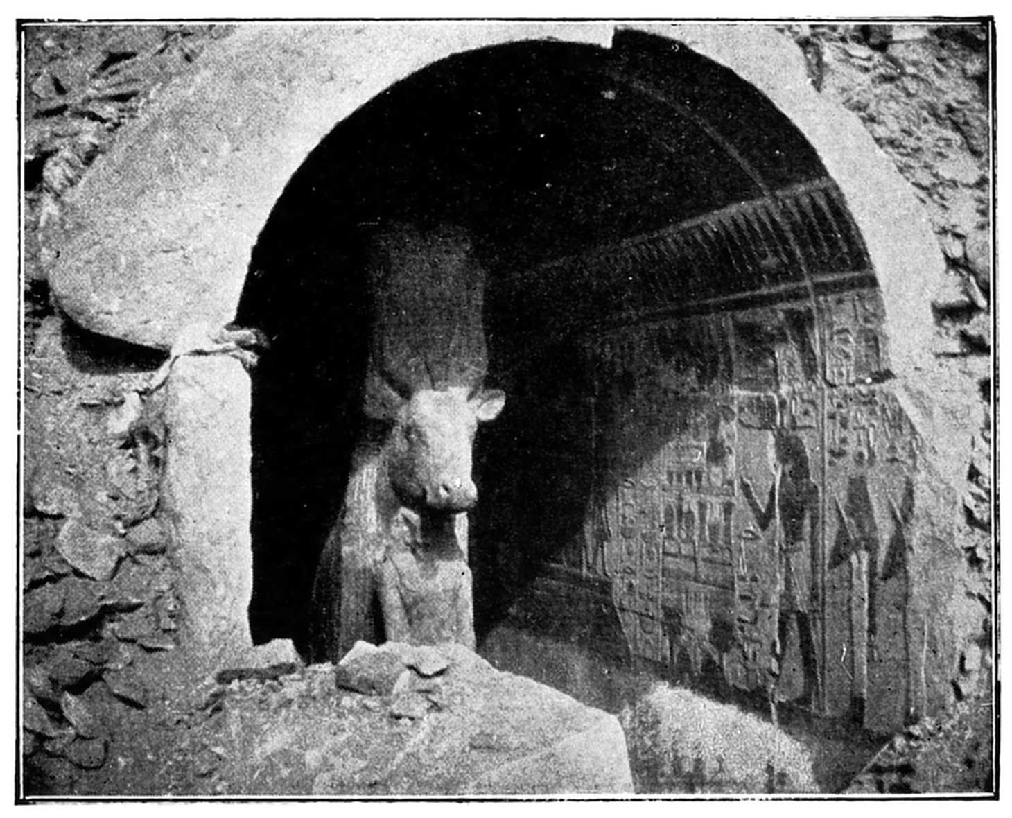 51 The head of the Pharaoh, which was stolen at the moment of discovery, has been found since this article appeared, and purchased by the Cairo Museum, 1912.